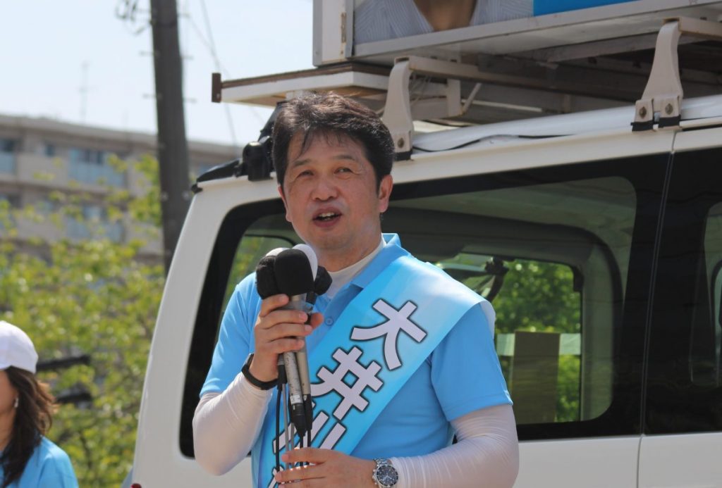水戸駅南口で現職の大井川氏は「8年の成果である挑戦する県政を続ける。人口減少社会で多様な人が活躍する社会を実現したい」と訴えました。