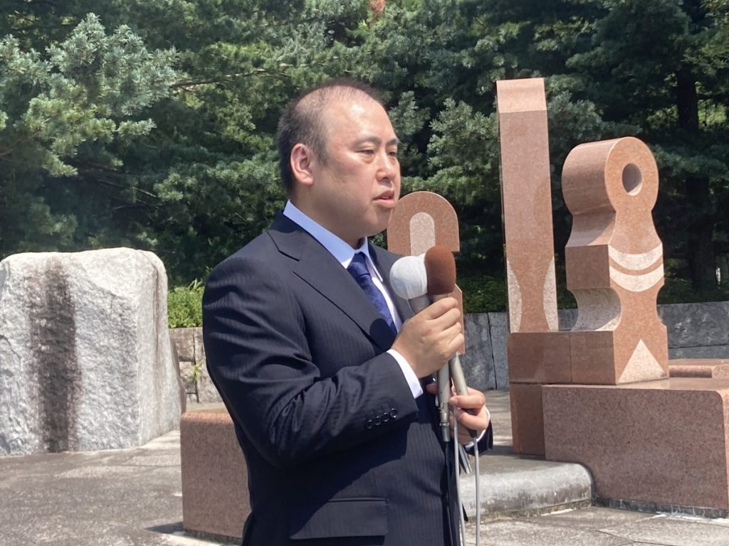 新人の内田氏は茨城県庁近くで「公務員に外国人を採用しないことや、農地へのメガソーラー拡大反対」と訴えました。
