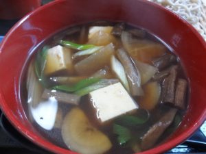 目玉は、けんちんそばを一食500円の価格で提供するチャリティー企画です。店の近くで収穫された城里町七会産の「常陸秋そば」を使っていることにちなみ、売上金を水戸市と城里町の社会福祉協議会に寄付します。今年も、昼前から大勢の人が来店していました。