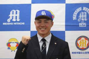 明秀日立高校の能戸輝夢外野手は、中日から4位で指名されました。