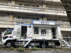 また、台風の時の豪雨を体験できる降雨体験車も登場しました。そのほか、新聞紙を使ったスリッパづくりやゴミ袋を使ったレインコート作りを学ぶコーナーもありました。「防災まつり」は、顔の見える関係づくりに向け、参加した人々の、交流を深める機会にもなったようです。
