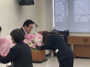 職員の代表が感謝の言葉を述べると、職員の間からはすすり泣きが漏れました。