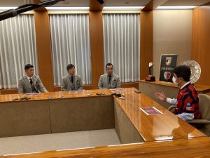 茨城県庁をたずねたのは、小泉文明社長、鬼木達監督、それに選手会長でゴールキーパーの早川友基選手です。