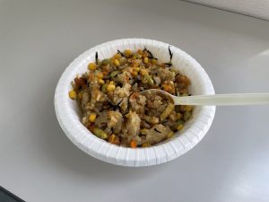 16日は、常磐大学健康栄養学科の学生8人が、高齢者や障害者など災害の時に支援や配慮が必要な人に向けた、あずき豆乳プリンやカレー混ぜご飯などの炊き出し用レシピをボランティアらに説明しました。そして、参加者と一緒に調理し、試食を行いました。