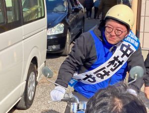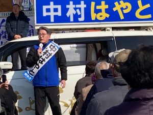 中村氏の選挙活動は、バイクで選挙区内を駆け巡り、こまめに演説会を開くというもので、「選挙に強い無敗の男」と言われた父親の中村喜四郎氏と似たスタイルで、支持を訴えています。