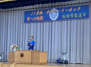 テーマは「夢への挑戦」で、2月10日、筑西市立下館中学校で540人の生徒に講演しました。生徒から「ミスをしたときの動き」を問われると、強気な攻めの姿勢を打ち出すことが大切だと話しました。プロスポーツ選手との交流は、子どもたちにいい刺激となったようです。