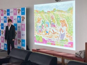 干し芋を生産する際に出る切れ端など「干し芋残渣」の問題に、小学校入学前の未就学児にも関心を持ってもらおうと、茨城大学の学生を中心に作るグループ「干し芋残渣削減プロジェクト」が、残渣をテーマにした絵本を制作しました。そして、3月26日水戸市役所で、高橋靖市長に絵本の朗読を披露しました。