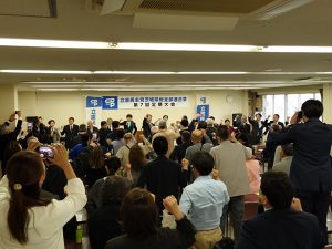 トップページ ニュース 政・経 立憲民主党県連定期大会 ニュース TOP 政・経社会スポーツイベント全国 政・経 2026年04月08日(水曜日) 立憲民主党県連定期大会 立憲民主党茨城県連の定期大会が、4月5日、水戸市内で開かれ、公明党と合流した中道改革連合が2月の衆議院選挙で大敗した反省を踏まえ、意志決定や合意形成を下から積み上げるなどの運動方針を承認しました。 石松俊雄幹事長は、公明党との新党結成に際し説明不足があったと、反省の言葉を述べました。衆議院で「中道改革連合」として新党を結成した公明党県本部との関係では、来年春の統一地方選挙までは県連が存続し、その後、党内議論をして整理するとしました。 新着記事一覧
