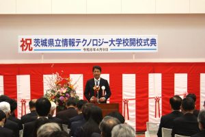 IT人材育成の拠点となる、県立情報テクノロジー大学校が4月9日水戸市内に開校しました。大学校は、IT短大、産業技術短大を発展的に改組したもので、AI、人工知能時代を迎え、急速なデジタル化に対応できる高度な人材を育成することを目的に作られました。
