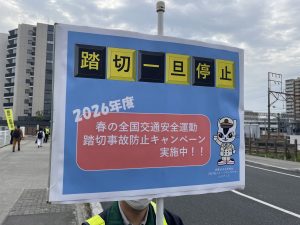踏切内での自動車や歩行者の事故を無くそうと、JR東日本水戸支社と水戸警察署は4月15日、水戸駅近くの踏切でドライバーに無理な横断をしないよう協力を呼びかけました。