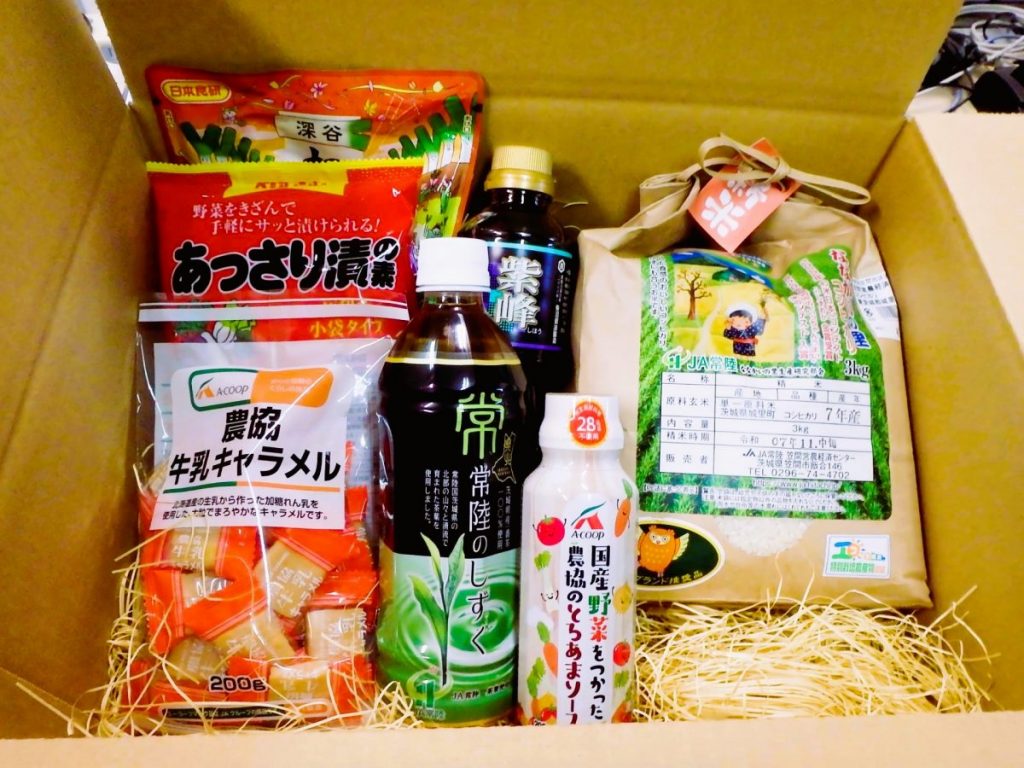 (ななかいの里コシヒカリ 3㎏・農協牛乳キャラメル・常陸のしずく・紫峰-しょうゆ-500ml・国産野菜をつかった農協のとろあまソース・ねぎ鍋つゆ・あっさり漬けの素)
