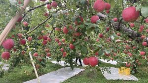 市場に出荷せず、自前の直売所で観光客に販売していて、木についてる時間の長い、完熟度が増したおいしいタイミングで収穫し、提供しています。追分りんご園は観光名所「袋田の滝」と「竜神大吊橋」の中間に位置し、シーズン中は茨城県内のほか、千葉・埼玉・東京など首都圏の客で賑わっています。